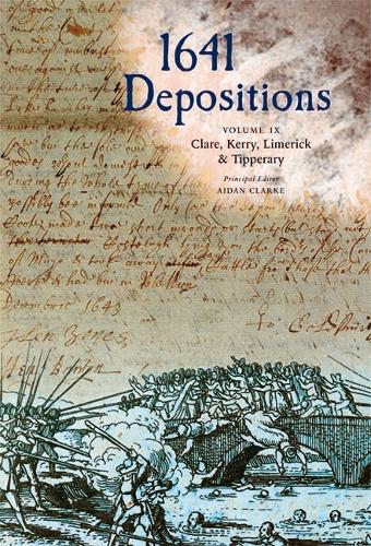 The 1641 Depositions are witness testimonies, mainly by Protestants, but also by some Catholics, from all social backgrounds, concerning their experiences of the 1641 Irish rebellion. The testimonies document the loss of goods, military activity, and the alleged crimes committed by the Irish insurgents. This body of material is unparalleled anywhere in early modern Europe. It provides a unique source of information for the causes and events surrounding the 1641 rebellion and for the social, economic, cultural, religious, and political history of seventeenth- century Ireland, England and Scotland. In total, 19,010 manuscript pages in 31 bound volumes held at Trinity College Dublin have been transcribed and are arranged for publication in 12 volumes from 2014 onwards. The depositions are available online at www.1641.tcd.ie